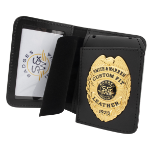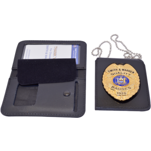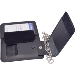 This duty leather single ID 4 in 1 badge case is custom-cut to fit your Smith & Warren badge. Proudly made in the USA from genuine leather and durable for everyday use. Rounded and stitched corners are sturdy and built for maximum comfort. A suede flap protects your ID window and badge. This well-built case features a removable badge section that can be worn around the neck, on a belt, or in a blazer pocket. The 30" beaded chain is included.