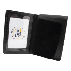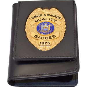 This "flip-out" book style single ID case is custom cut to fit your Smith & Warren badge. The case is made from Top Grain Leather with rounded and stitched corners for maximum durability. The Flip out section allows the badge to be displayed without exposing the ID/Credential.