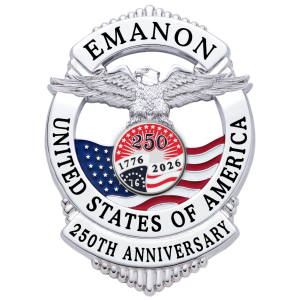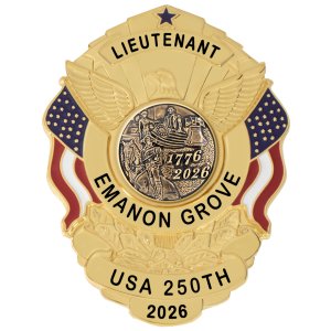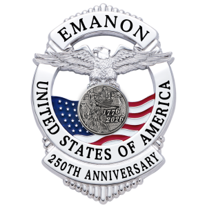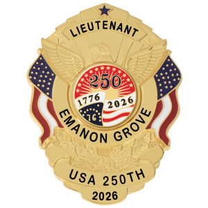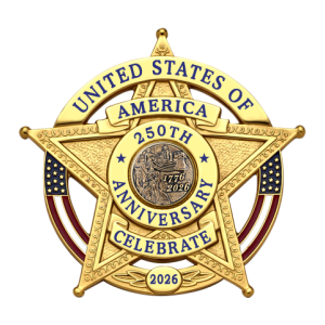 This historic collection includes three original commemorative badge designs, “The Founding”, “The Journey”, and "The Declaration", as well as a vibrant full-color seal and a 3D sculpted seal that can be applied to any badge. Also available is a service award bar to mark this once-in-a-lifetime event. Departments can personalize each badge with agency names and ranks, creating a meaningful piece of history to wear or display. Orders for Semiquincentennial badges will be available through December 31st, 2026, at which point the dies will be retired.